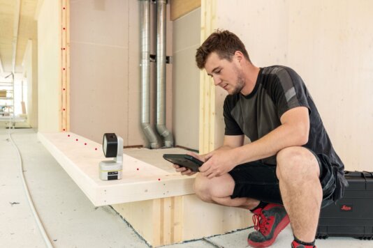 Precyzyjne pomiary: Leica iCON trades umożliwia rejestrowanie bardzo precyzyjnych danych pomiarowych, nawet z trudno dostępnych miejsc. Oprogramowanie natychmiast wizualizuje na tablecie wyniki pomiarów w postaci planu 2D lub model 3D. W ten sposób możesz natychmiast sprawdzić, co zmierzyłeś i upewnić się, czy nie zapomniałeś o żadnym punkcie pomiarowym.